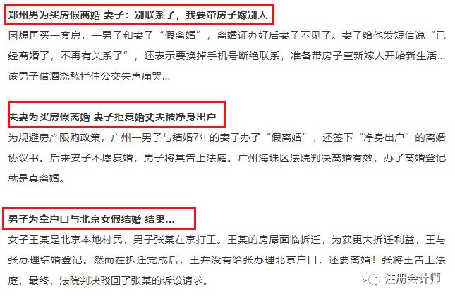 注会菌经常在网上看到“假结婚”、“假离婚”的事件报道,大部分都是为了买房、卖房,大部分也是为了逃税!